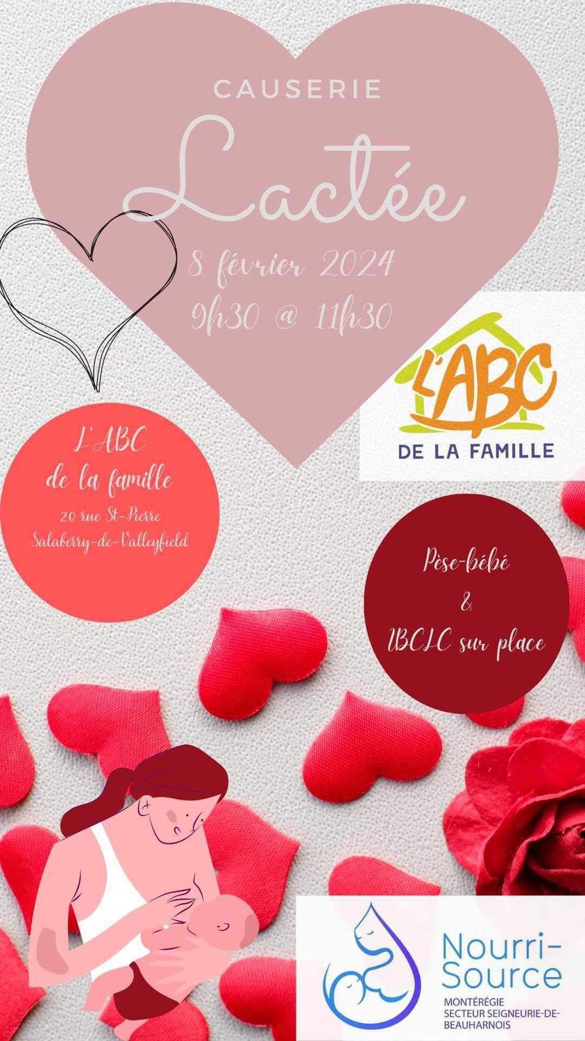 Tu allaites ton bébé ou tu souhaiterais allaiter ton nouveau-né et rencontrer une marraine d’allaitement? Nourri-Source sera présent dans les locaux de l’ABC de la famille, jeudi le 8 février entre 9h30 et midi.